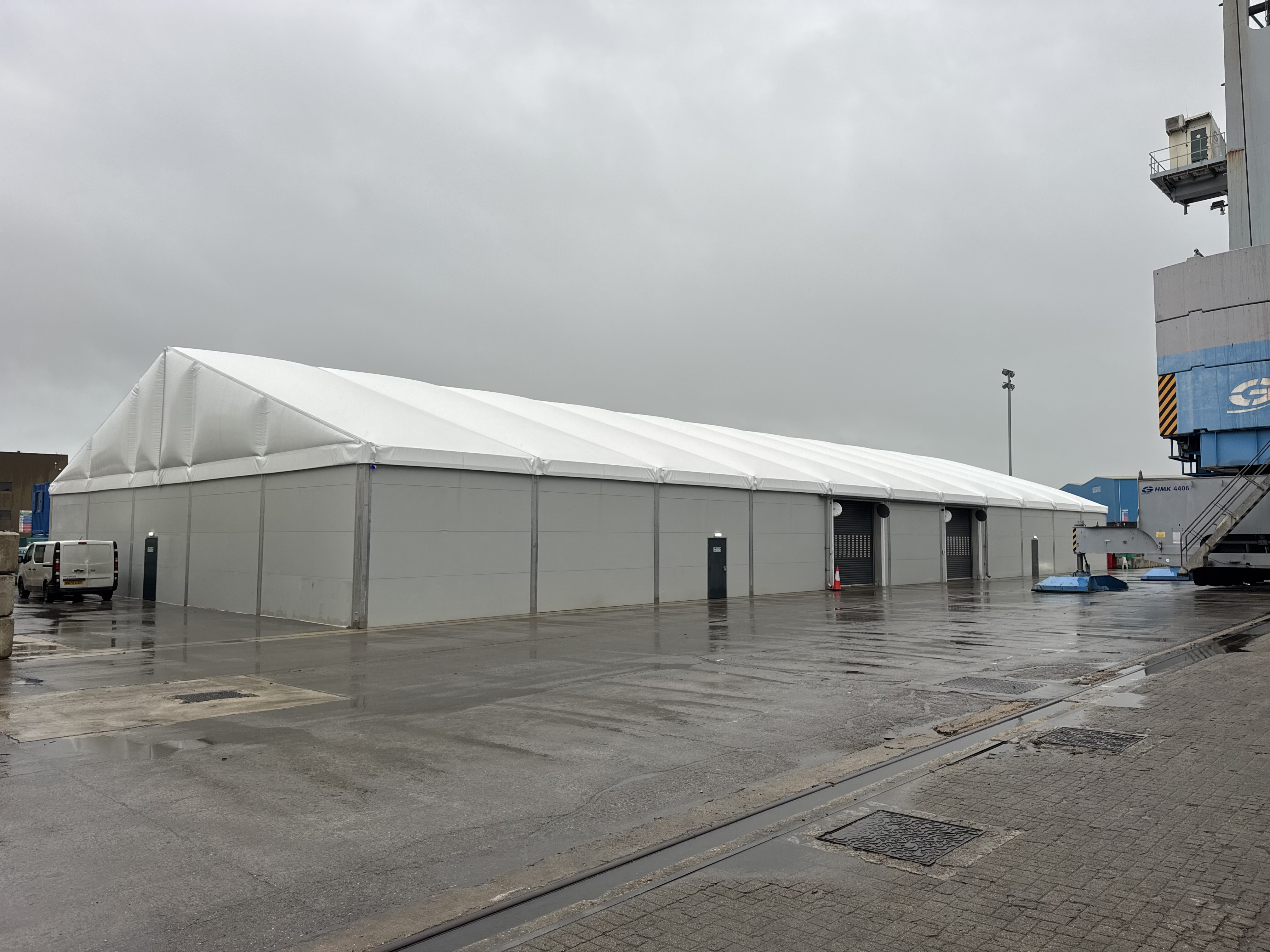 As speed was of the essence we specified a 1400sq/mt Aluminium framed modular building, and because we keep these in stock, it could be rapidly deployed to site.