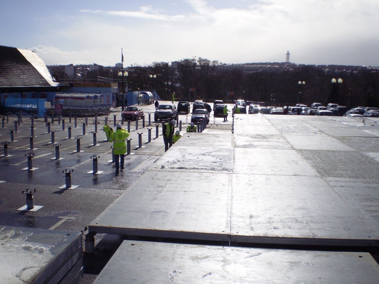 Once the legs are in place and levelled, the Heavy Deck panels are then lifted into position using a crane. The panels locate into the legs without any need for additional fixings.